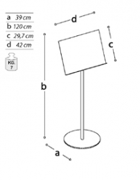 LEGGIO metallico con funzione espositiva della linea Expò. Piano inclinato formato da lastra sandwich A3 orizzontale (cm 42x29,7h mm 3).