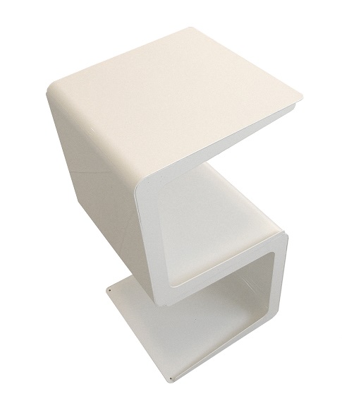 Espositore metallico aggregabile a gondola della linea Theta, realizzato con lamiera metallica mm 20\10 e n.1 ripiano inclinato cm32x38. Finitura con polveri epossipoliestere a caldo, colori: grigio alluminio, grigio micaceo, corten, blu sable, bianco. Ingombro espositore cm 32x38x102h