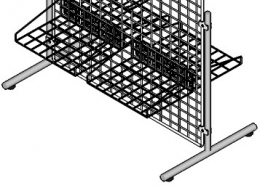 ESPOSITORE PORTA SCARPE modulare autostabile della linea GRID composto da n. 2 piantane metalliche con piede dritto cm 60x80h, n. 1 griglia metallica bifacciale, cm 100x200, n.6 morsetti giunto parallelo piatto cm5,5, n.8 portascarpe laterale in filo metallico cm12,5x32,5, n.1 pannello porta banner in dibond cm100x25h sp.4mm. Ingombro cm 60x108x205h. Finitura parti metalliche con polveri epossipoliestere a caldo, colori: grigio alluminio, grigio micaceo, bianco.