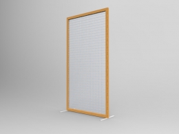 ESPOSITORE autostabile della linea STRATOS composto da n.2 piantane metalliche con piede dritto cm 60x5, n.1 griglia metallica bifacciala, cm 100x200.Ingombro cm 60x110x205h. Cornice laterale in legno massello finitura naturale con protettivo semilucido. Finitura parti metalliche con polveri epossipoliestere a caldo, colori: grigio alluminio, grigio micaceo, bianco.