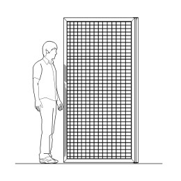 ESPOSITORE autostabile della linea STRATOS composto da n.1 griglia metallica bifacciali, cm 100x200h. Cornice laterale in legno massello finitura naturale con protettivo semilucido. Più griglie don giunzione angolare formano composizioni autoportanti.