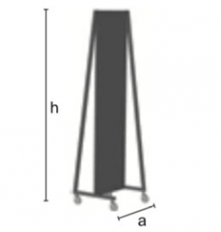 Specchiera da terra, girevole su ruote, realizzata in tubo quadro 30x30 mm.Ruote Ø 80 mm