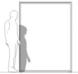 SPECCHIO AUTOPORTANTE con struttura in alluminio e specchio sintetico. Dimensione 150x200xh, dimensione piede metallico cm 53. Finitura parti metalliche con polveri epossipoliestere a caldo, colori: grigio alluminio, grigio micaceo, bianco.