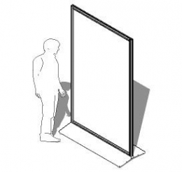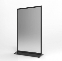 SPECCHIO AUTOPORTANTE con struttura in alluminio e specchio sintetico. Dimensione specchio cm c.a. cm 112x192h, ingombro cm 120x50x210h, dimensione base metallica cm 120x50. Finitura parti metalliche con polveri epossipoliestere a caldo, colori: grigio alluminio, grigio micaceo, bianco.