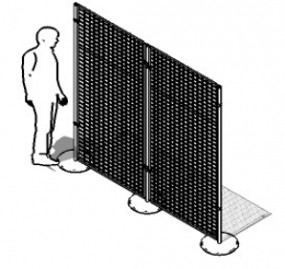 DUE MODULI AFFIANCATI CON PIANTANA CONDIVISA: Pannello ESPOSITIVO modulare autostabile della linea Expò composto da n. 3 piantane metalliche, n. 2 griglie metalliche bifacciali, cm 100x200 e n. 3 piedi metallici tondi diam. cm 39. Ingombro struttura cm 250x200h. Finitura parti metalliche con polveri epossipoliestere a caldo, colori: grigio alluminio, grigio micaceo, bianco.
