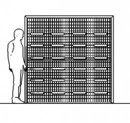 ESPOSITORE autostabile della linea STRATOS composto da n. 2 piantane metalliche con piede dritto cm 60x5, n. 2 griglie metalliche bifacciali, cm 100x200.Ingombro cm 60x210x205h. Cornice laterale in legno massello finitura naturale con protettivo semilucido. Attrezzabile con piani ad altezza regolabile in lamiera pressopiegata cm12x33.Finitura parti metalliche con polveri epossipoliestere a caldo, colori: grigio alluminio, grigio micaceo, bianco