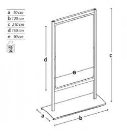 Dimensione bacheca cm 90x150h. Ingombro struttura cm 120x210h