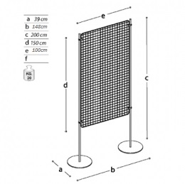 Pannello ESPOSITIVO modulare autostabile della linea Expò composto da n. 2 piantane metalliche, n. 1 griglia metallica bifacciale, cm 100x150h, e n. 2 piedi metallici tondi diam. cm 39.