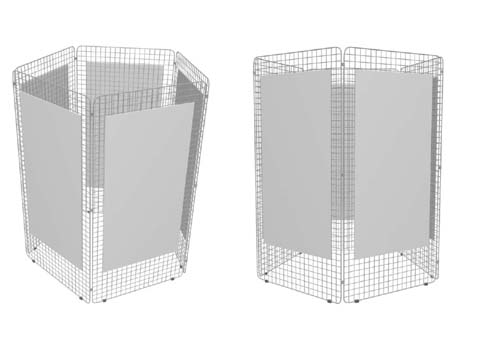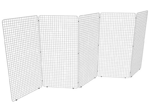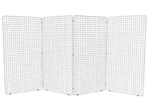 Composizioni di griglie espositive modulari maglia cm 5x5. Griglie espositive per mostre temporanee, mostre fotografiche, mostre itineranti, manifestazioni, mostre di pittura, biblioteche ed enti. Griglie espositive metalliche con finitura anche per esterno. Griglie espositive di grande formato.