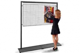 Pannello ESPOSITIVO autoportante della linea Sideros con struttura e base metallica e griglia metallica bifacciale, cm 200x100h.