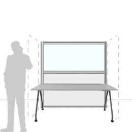 Pannello divisorio da scrivania MACRO.OFX "finestrato laminato" con superficie inferiore in laminato plastico e superiore in vetro acrilico - cm 180x180h (parte inferiore cm 110h).