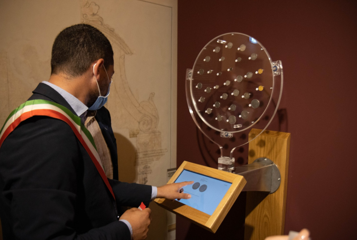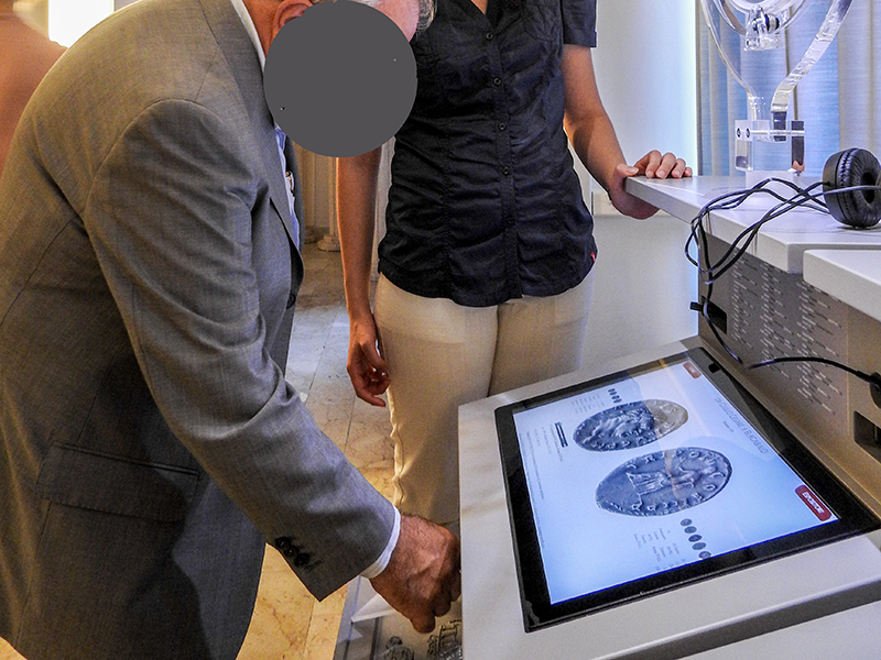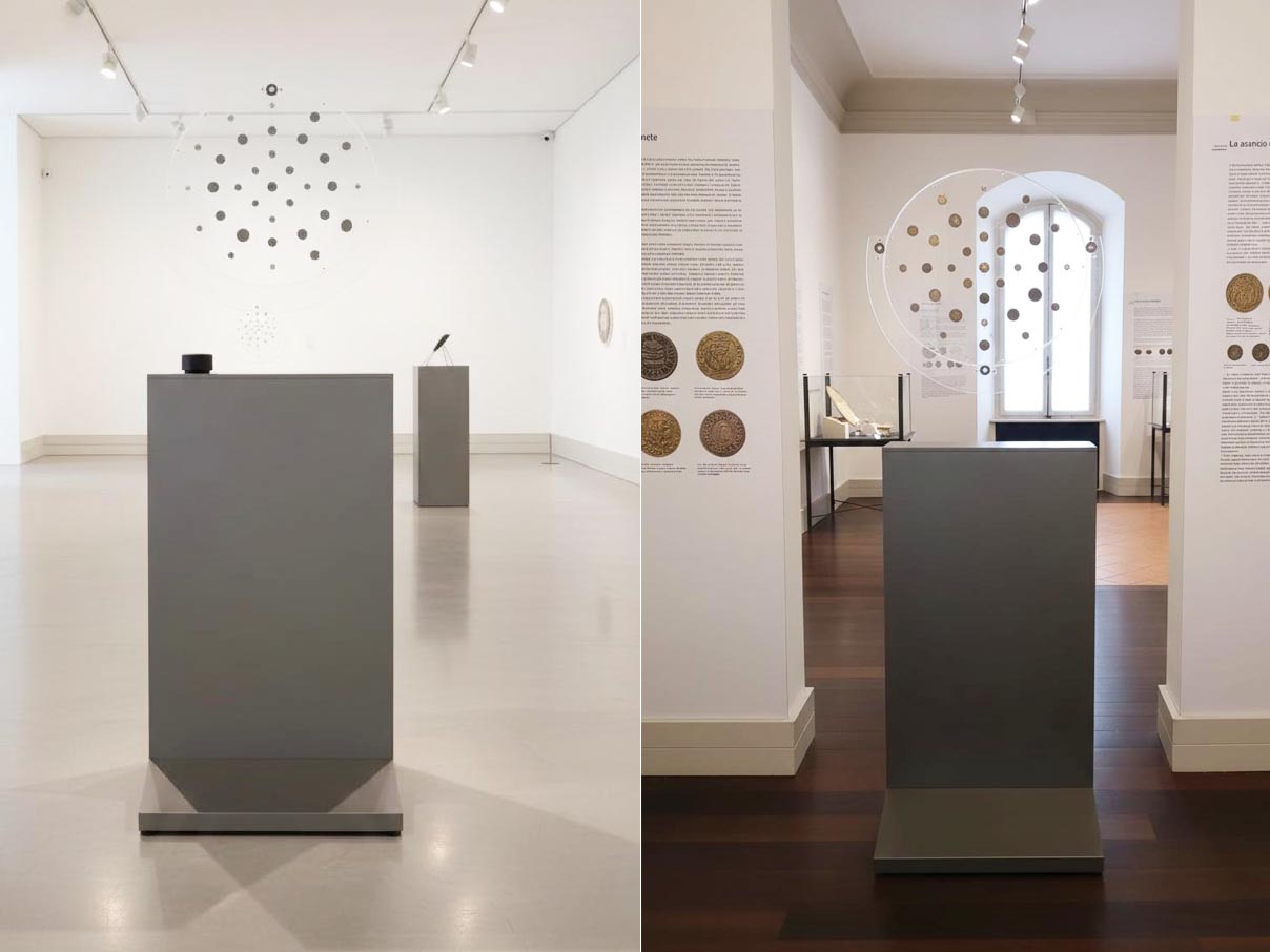 Il Monetiere/Medagliere Interattivo Rotante è un nuovo e rivoluzionario strumento, aggiunto nella collezione Mastroiannidesign per l’esposizione contemporanea di monete antiche e rare, medaglie, etc. disegnato e realizzato in Italia. Si differenzia dalle teche classiche sia nei materiali, che nella modalità di utilizzo. Dotato di sistemaTouch Screen, è stato realizzato per consentire al numismatico, o chi per esso, di raccontare nei particolari storici, geografici, fotografici, di commento (audio-video) le singole monete o medaglie che si andranno ad inserire in ogni disco espositore, inoltre il Monetiere/Medagliere Interattivo Rotante consente una visione ravvicinata, sia sul diritto che sul rovescio, di ciascuna moneta/medaglia esposta, e consente al visitatore, grazie alle sue rotazioni (Orizzontale e Verticale), di mettere in posizione regolare (Diritta) qualsiasi oggetto esposto.