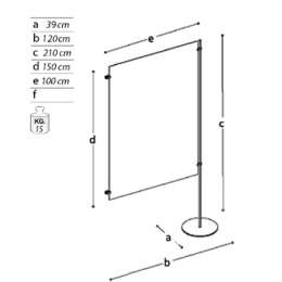 Pannello ESPOSITIVO aggiuntivo della linea Expò composto da n. 1 piantana metallica, n. 1 lastra bifacciale sandwich (alluminio-polietilene-alluminio) cm 100x150h, spessore mm 3 e n. 1 piede metallico tondo diam. cm 39.