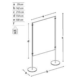 Pannello ESPOSITIVO modulare autostabile della linea Expò composto da n. 2 piantane metalliche, n. 1 lastra bifacciale sandwich (alluminio-polietilene-alluminio), cm 100x150h, spessore mm 3, e n. 2 piedi metallici tondi diam. cm 39.