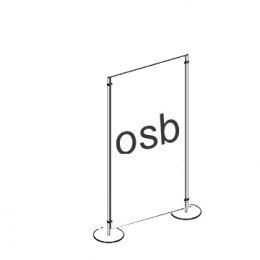 Pannello ESPOSITIVO modulare autostabile della linea Expò composto da n. 2 piantane metalliche, n. 1 lastra OSB ( lamelle di legno incollate e pressate) , cm 120x200h, spessore mm 9, e n. 2 piedi metallici tondi diam. cm 39. Finitura parti metalliche con polveri epossipoliestere a caldo, colori: grigio alluminio, grigio micaceo, bianco. Colore lastra: OSB. Ingombro struttura c.a. cm 165x200h.