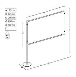 Pannello ESPOSITIVO aggiuntivo della linea Expò composto da n. 1 piantana verticale con piede tondo diam. cm 39, n. 2 tubi orizzontali comprensivi di morsetti e n. 1 lastra bifacciale sandwich (alluminio-polietilene-alluminio) cm 100x200, spessore mm 3. Possibilità di composizioni in linea e con rotazioni da 0 a 360 gradi.