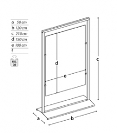 Pannello ESPOSITIVO autoportante della linea Sideros con struttura e base metallica e lastra bifacciale lastra in plexiglass trasparente, cm 100xh150, spessore mm 5.