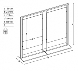 Ingombro struttura cm 240x210h. Basamento cm 240x50.