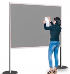 Pannello LAVAGNA autoportante della linea Macro con struttura in alluminio e lastra interna cm 192x150h in lamiera di acciaio pressopiegata, n. 2 basi metalliche tonde diam. cm 39.