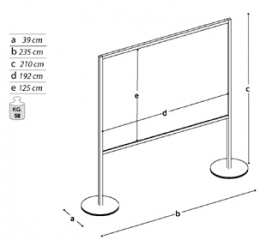 Pannello INFORMATIVO autoportante della linea Macro con struttura in alluminio e lastra interna in policarbonato alveolare e feltro cm 192x120h. N. 2 basi metalliche tonde diam. cm 39.