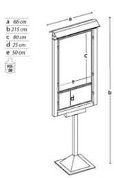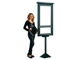 Pannello INFORMATIVO per esterno della linea Sideros con struttura in metallo e lastra sandwich intelaiata con profilo in alluminio. Il pannello è predisposto per l’ancoraggio a terra. Dim. lastre interne cm 50x80h + 50x25h.