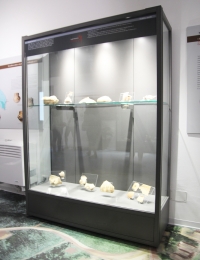 Vetrina espositiva a PARETE della linea Argurion con struttura in alluminio e lastre in vetro antinfortunio stratificato. Anta apribile con serratura ad incasso.Controllo passivo dell'umidità (silica gel granulare). Tamponamento e fondo in lamiera di alluminio.