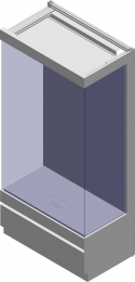 Vetrina espositiva a PARETE della linea Theca con struttura in alluminio e acciaio, pannelli di rivestimento in lamiera pressopiegata, vetro stratificato su tre lati, n°1 ripiano interno in vetro stratificato o metallo. Sistema di controllo passivo dell'umidità relativa. Apertura con sistema di scorrimento dell'anta frontale in vetro.