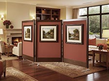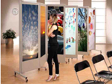 Bacheche autoportanti su ruote modulari per interno. Apertura e chiusura " a pacchetto" istantanea.