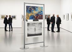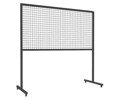 Griglia espositiva su ruote per mostre fotografiche e d'arte realizzato con griglie su ruote.
