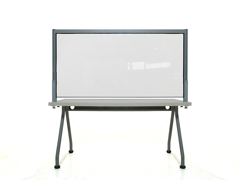 Schermi divisori da scrivania. Cornice in alluminio, lastra interna in lastra acrilica. Per la separazione utente-operatore in postazioni front office